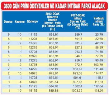 İntibak Yasası ile ilgili daha önceki konumuzda intibak zamlarının ne kadar olacacağını ziyaretçilerimizle paylaşmıştık. Bu sayfada ise 1982 ve sonrasında emekli maaşı bağlananlar için intibak zammı tablosu bulunuyor. 3600 günden emekli olanlar, 5500 günden emekli olanlar, 6000 günden emekli olanlar ve 7400 ve 9000 günden emekli olanlar için kişilerin derece, kademe ve gösterge değerlerine göre intibak farkı oranları bulunuyor. Bu tabloya göre İntibak Sorgulama işlemlerinizi kendiniz gerçekleştirebilirsiniz. Günlere göre İntibak Yasası Zam Oranları ekte.